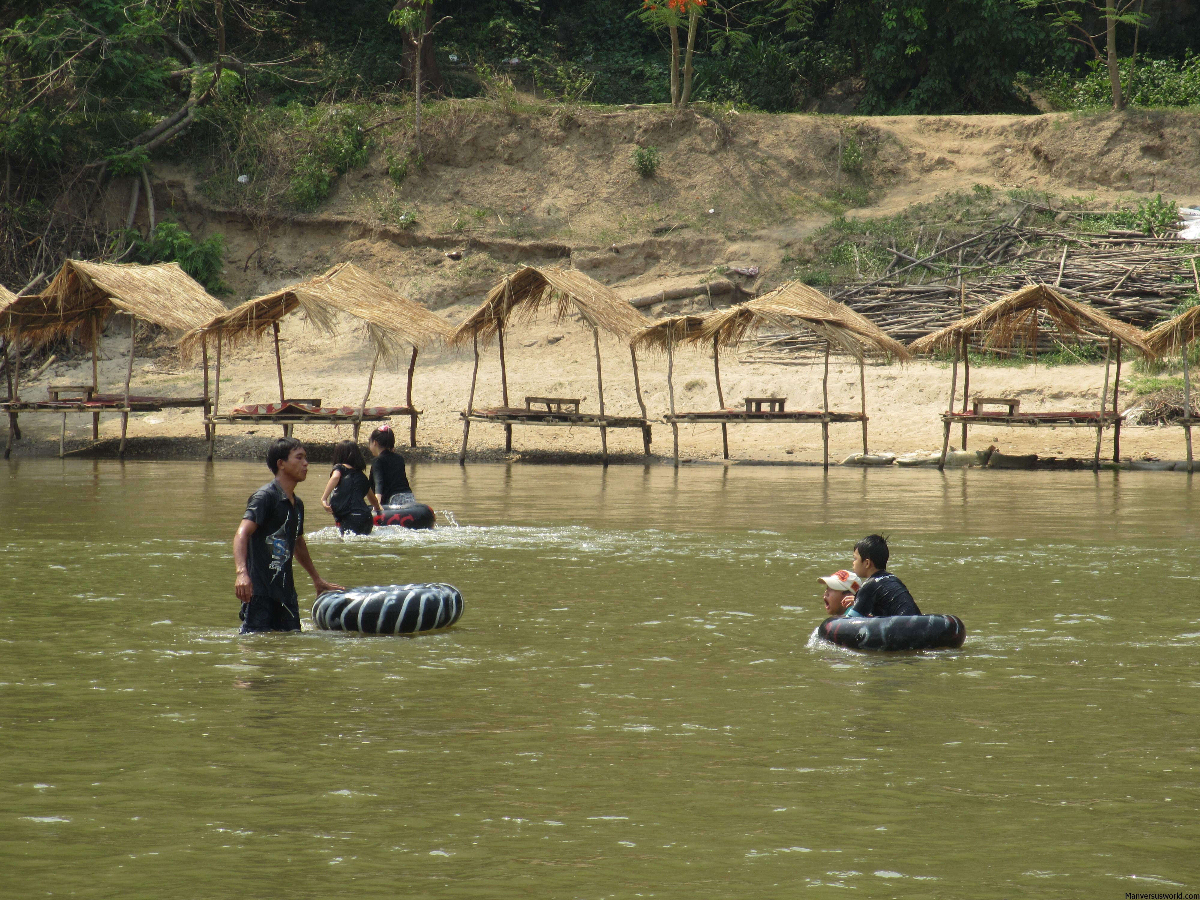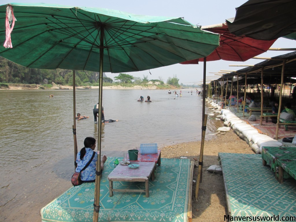 It’s not your typical beach – but the locals don’t care. Children laugh and play, floating down the river in rubber tubes, while even adults splash about in the lukewarm water – when they’re not dining on large portions of delicious Thai food.