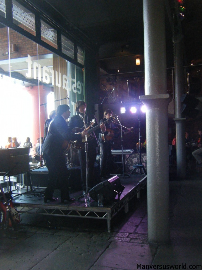 You can imagine, then, what a treat it was – in the spiritual home of the Fab Four – to see a not-so fab four grown men in mop-top wigs perform some lively covers in front of a crowd made up mostly of middle-aged tourists.