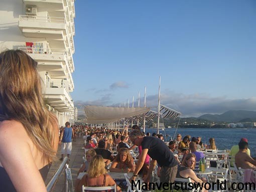 Our first night was relatively low-key – for Ibiza that is – as we downed a few drinks on our hotel balcony over-looking San Antonio Beach and then went into the township to a few of the minor clubs (that is to say they were smaller clubs, not full of young people).